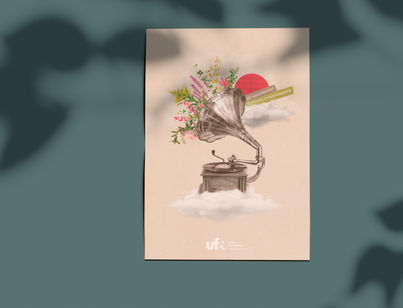 Diseño de collage digital de temática musical para entragar como obsequio en el evento del 20º aniversario de La Unión Fonográfica Independiente.